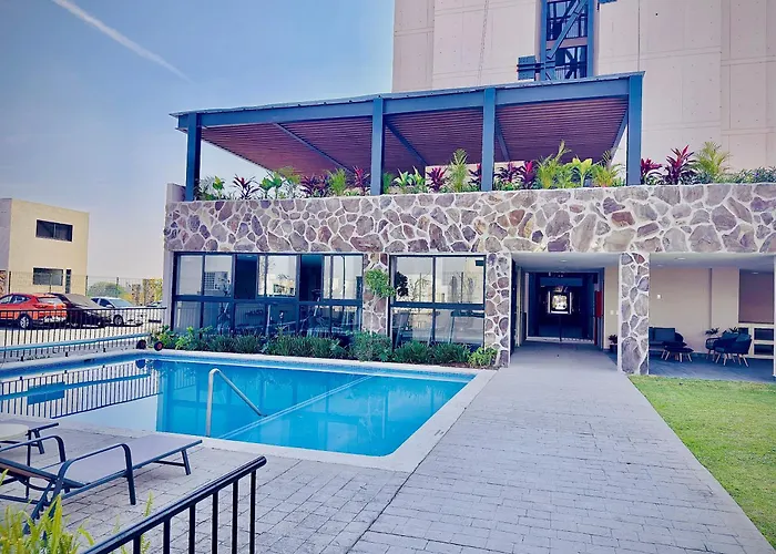 Departamento Moderno Con Alberca, Terraza Y Acceso Controlado公寓位于瓜达拉哈拉距离Plaza de las Américas有25分钟的步行路程。公寓设有游泳池和健身中心。